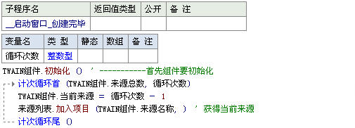 如果在组件箱找不到“TWAIN组件”,哪么就要在“菜单栏-->工具-->支持库配置”,不知道是那个支持库的情况下,在弹出的新窗口点“全选”,“确定”,组件箱就会有你想要的组件。