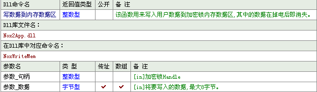使用函数:long NoxWriteMem(long nKeyHandle,unsignedchar *pBuffer);