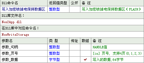 使用函数:long NoxWriteStorage(long nKeyHandle,long page, unsigned char * pBuffer );